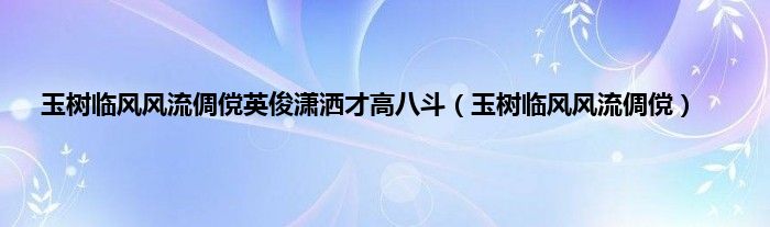 以上就是【玉树临风风流倜傥英俊潇洒才高八斗,玉树临风风流倜傥】相关内容。