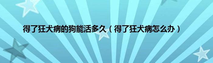 大家好,小问来为大家解答以上问题。得了狂犬病的狗能活多久,得了狂犬病怎么办这个很多人还不知道,现在让我们一起来看看吧!