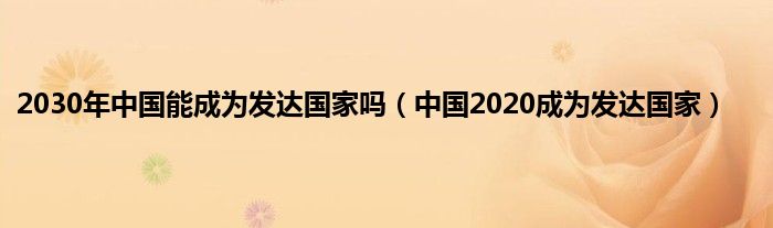 大家好,小问来为大家解答以上问题。2030年中国能成为发达国家吗,中国2020成为发达国家这个很多人还不知道,现在让我们一起来看看吧!
