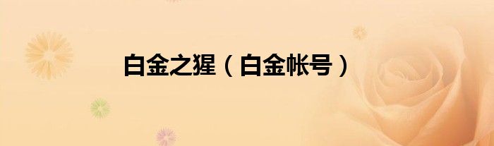 大家好,小问来为大家解答以上问题。白金之猩,白金帐号这个很多人还不知道,现在让我们一起来看看吧!