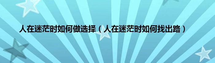 以上就是【人在迷茫时如何做选择,人在迷茫时如何找出路】相关内容。
