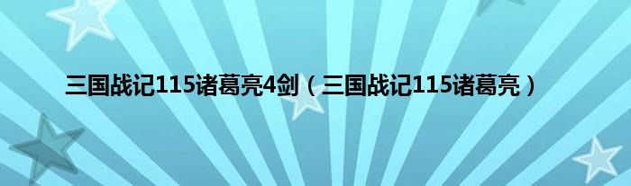 大家好,小问来为大家解答以上问题。三国战记115诸葛亮4剑,三国战记115诸葛亮这个很多人还不知道,现在让我们一起来看看吧!