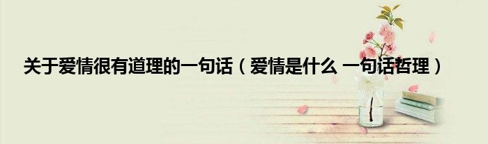 大家好,小问来为大家解答以上问题。关于爱情很有道理的一句话,爱情是什么 一句话哲理这个很多人还不知道,现在让我们一起来看看吧!