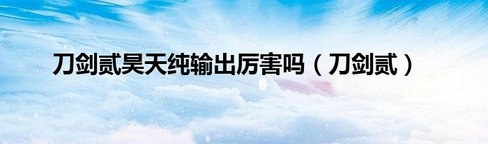大家好,小问来为大家解答以上问题。刀剑贰昊天纯输出厉害吗,刀剑贰这个很多人还不知道,现在让我们一起来看看吧!