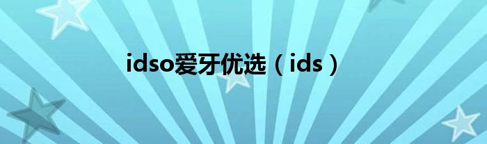 大家好,小问来为大家解答以上问题。idso爱牙优选,ids这个很多人还不知道,现在让我们一起来看看吧!