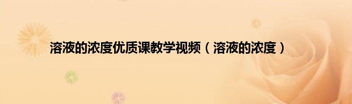大家好,小问来为大家解答以上问题。溶液的浓度优质课教学视频,溶液的浓度这个很多人还不知道,现在让我们一起来看看吧!