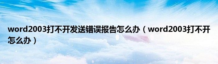 以上就是【word2003打不开发送错误报告怎么办,word2003打不开怎么办】相关内容。