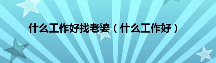 大家好,小问来为大家解答以上问题。什么工作好找老婆,什么工作好这个很多人还不知道,现在让我们一起来看看吧!