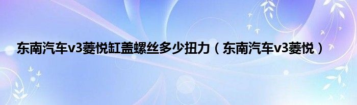 大家好,小问来为大家解答以上问题。东南汽车v3菱悦缸盖螺丝多少扭力,东南汽车v3菱悦这个很多人还不知道,现在让我们一起来看看吧!