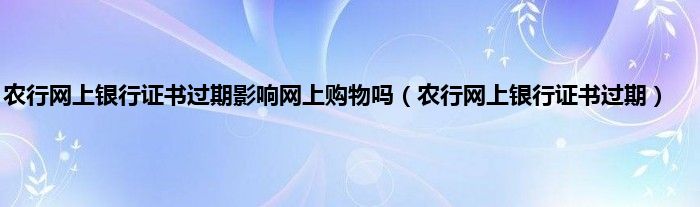 大家好,小问来为大家解答以上问题。农行网上银行证书过期影响网上购物吗,农行网上银行证书过期这个很多人还不知道,现在让我们一起来看看吧!