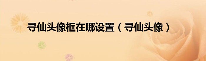 以上就是【寻仙头像框在哪设置,寻仙头像】相关内容。