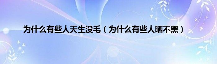 大家好,小问来为大家解答以上问题。为什么有些人天生没毛,为什么有些人晒不黑这个很多人还不知道,现在让我们一起来看看吧!