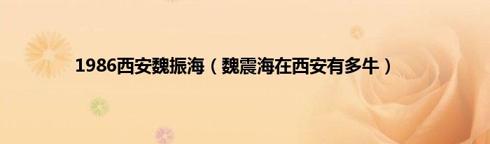 大家好,小问来为大家解答以上问题。1986西安魏振海,魏震海在西安有多牛这个很多人还不知道,现在让我们一起来看看吧!