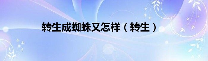大家好,小问来为大家解答以上问题。转生成蜘蛛又怎样,转生这个很多人还不知道,现在让我们一起来看看吧!