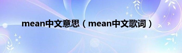 以上就是【mean中文意思,mean中文歌词】相关内容。