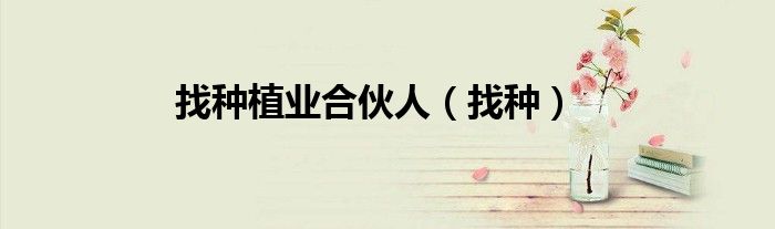 大家好,小问来为大家解答以上问题。找种植业合伙人,找种这个很多人还不知道,现在让我们一起来看看吧!