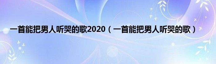 以上就是【一首能把男人听哭的歌2020,一首能把男人听哭的歌】相关内容。