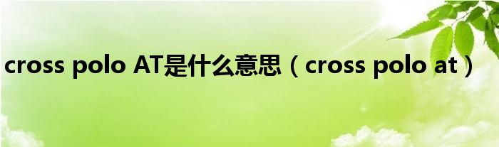 以上就是【cross polo AT是什么意思,cross polo at】相关内容。