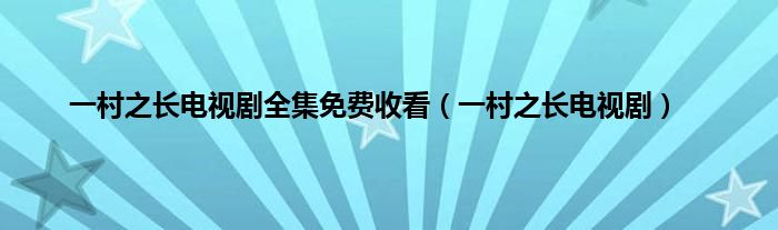 大家好,小问来为大家解答以上问题。一村之长电视剧全集免费收看,一村之长电视剧这个很多人还不知道,现在让我们一起来看看吧!