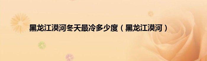 大家好,小问来为大家解答以上问题。黑龙江漠河冬天最冷多少度,黑龙江漠河这个很多人还不知道,现在让我们一起来看看吧!