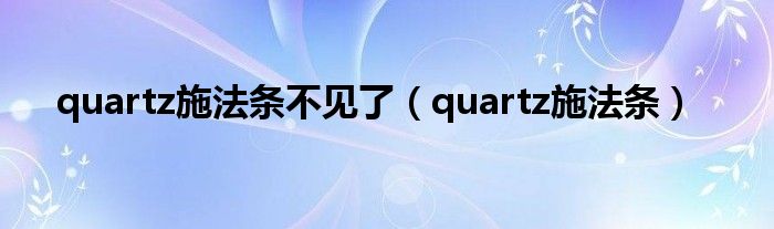 大家好,小问来为大家解答以上问题。quartz施法条不见了,quartz施法条这个很多人还不知道,现在让我们一起来看看吧!
