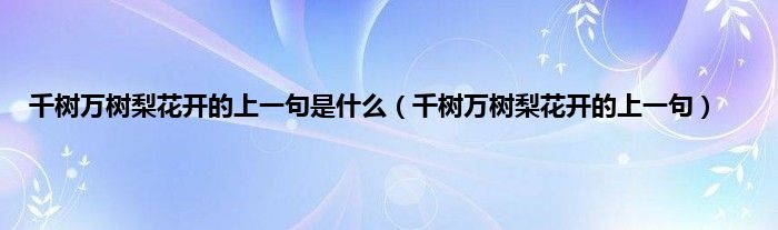 大家好,小问来为大家解答以上问题。千树万树梨花开的上一句是什么,千树万树梨花开的上一句这个很多人还不知道,现在让我们一起来看看吧!