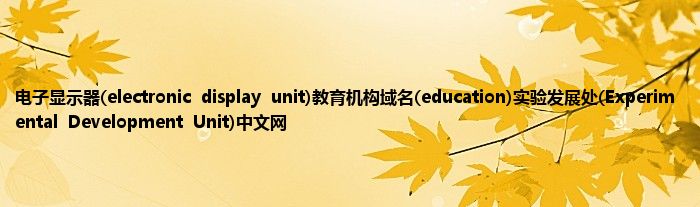 大家好,小问来为大家解答以上问题。电子显示器(electronic display unit)教育机构域名(education)实验发展处(Experimental Development Unit)中文网这个很多人还不知道,现在让我们一起来看看吧!