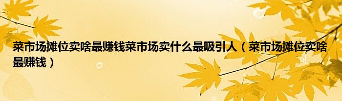 以上就是【菜市场摊位卖啥最赚钱菜市场卖什么最吸引人,菜市场摊位卖啥最赚钱】相关内容。