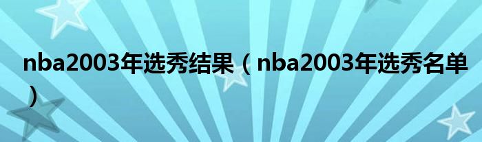 大家好,小问来为大家解答以上问题。nba2003年选秀结果,nba2003年选秀名单这个很多人还不知道,现在让我们一起来看看吧!