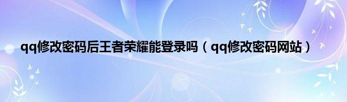 以上就是【qq修改密码后王者荣耀能登录吗,qq修改密码网站】相关内容。