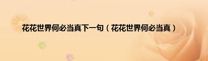 以上就是【花花世界何必当真下一句,花花世界何必当真】相关内容。