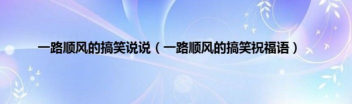 以上就是【一路顺风的搞笑说说,一路顺风的搞笑祝福语】相关内容。