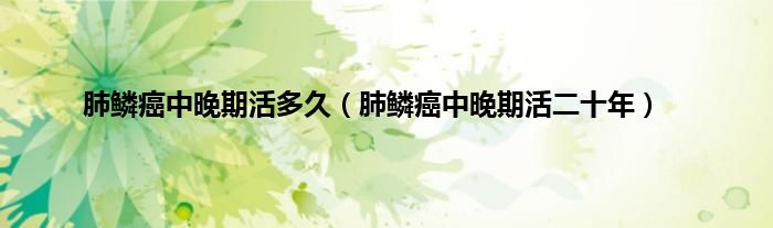 大家好,小问来为大家解答以上问题。肺鳞癌中晚期活多久,肺鳞癌中晚期活二十年这个很多人还不知道,现在让我们一起来看看吧!