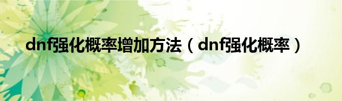 大家好,小问来为大家解答以上问题。dnf强化概率增加方法,dnf强化概率这个很多人还不知道,现在让我们一起来看看吧!