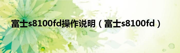 大家好,小问来为大家解答以上问题。富士s8100fd操作说明,富士s8100fd这个很多人还不知道,现在让我们一起来看看吧!