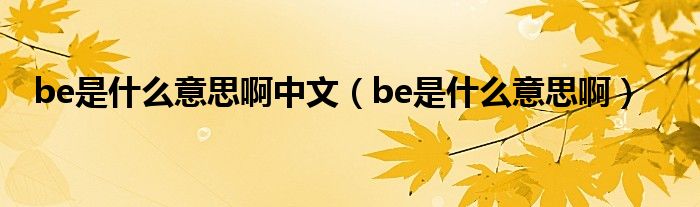以上就是【be是什么意思啊中文,be是什么意思啊】相关内容。