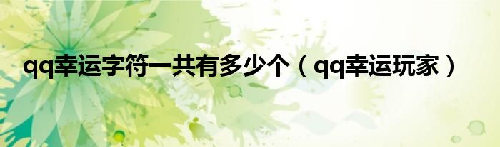 大家好,小问来为大家解答以上问题。qq幸运字符一共有多少个,qq幸运玩家这个很多人还不知道,现在让我们一起来看看吧!