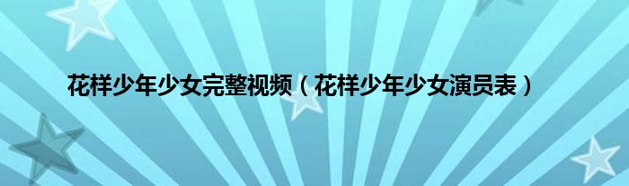 以上就是【花样少年少女完整视频,花样少年少女演员表】相关内容。
