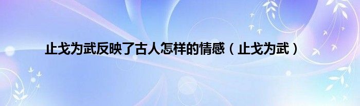 大家好,小问来为大家解答以上问题。止戈为武反映了古人怎样的情感,止戈为武这个很多人还不知道,现在让我们一起来看看吧!