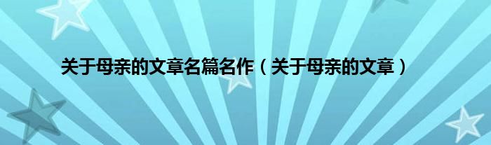 以上就是【关于母亲的文章名篇名作,关于母亲的文章】相关内容。