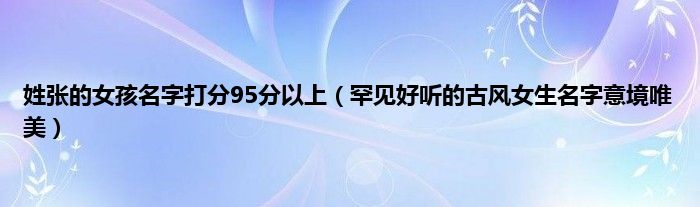 大家好,综合小编来为大家讲解下。姓张的女孩名字打分95分以上,罕见好听的古风女生名字意境唯美这个很多人还不知道,现在让我们一起来看看吧!
