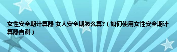 本文,女性安全期计算器 女人安全期怎么算?,如何使用女性安全期计算器自测到此就分享完毕,希望对大家有所帮助。