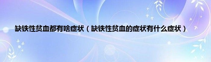 本文,缺铁性贫血都有啥症状,缺铁性贫血的症状有什么症状到此就分享完毕,希望对大家有所帮助。