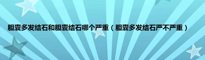 大家好,胆囊多发结石和胆囊结石哪个严重,胆囊多发结石严不严重很多人还不知道,现在让我们一起来看看吧!