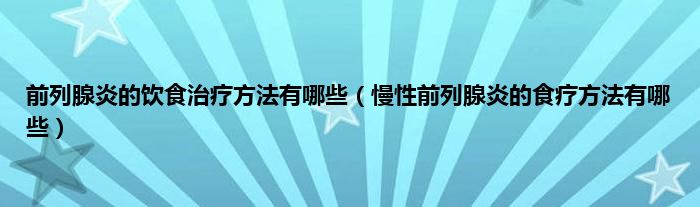 本文,前列腺炎的饮食治疗方法有哪些,慢性前列腺炎的食疗方法有哪些到此就分享完毕,希望对大家有所帮助。