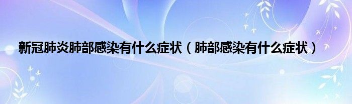 本文,新冠肺炎肺部感染有什么症状,肺部感染有什么症状到此就分享完毕,希望对大家有所帮助。