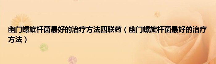 大家好,幽门螺旋杆菌最好的治疗方法四联药,幽门螺旋杆菌最好的治疗方法很多人还不知道,现在让我们一起来看看吧!