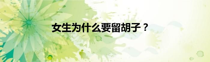 大家好,女生为什么要留胡子?很多人还不知道,现在让我们一起来看看吧!
