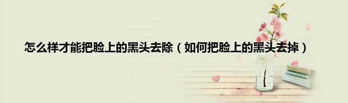 怎么样才能把脸上的黑头去除(如何把脸上的黑头去掉)