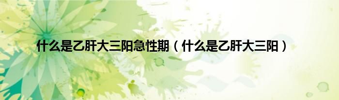 什么是乙肝大三阳急性期(什么是乙肝大三阳)
